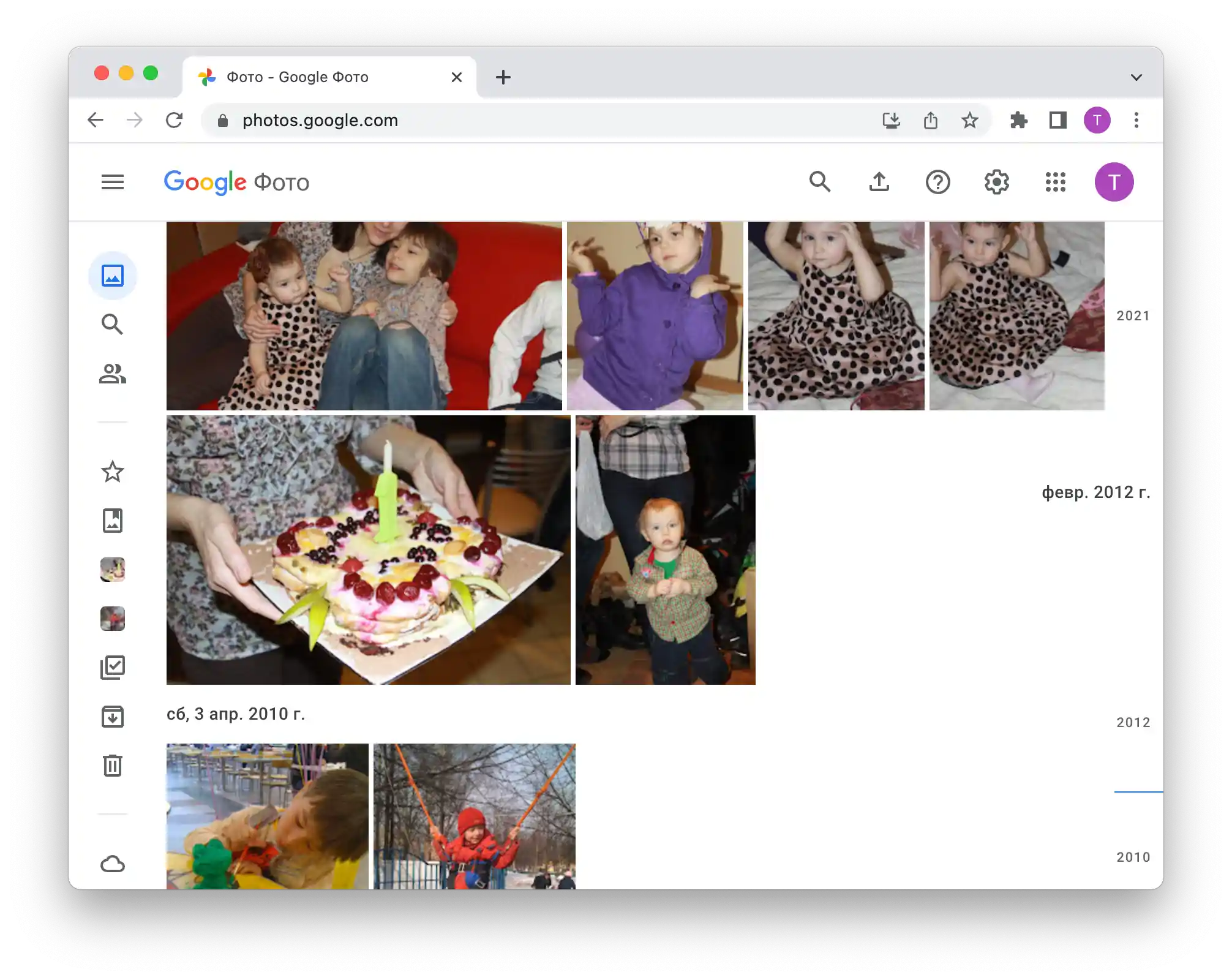 Поддерживается автоматическое добавление новых фоток с телефона, планшета и цифровых камер — просто подключите устройство к компьютеру, и готово. Также можно сделать так, чтобы все фото, которые присылают вам в Telegram, загружались в вашу коллекцию.
