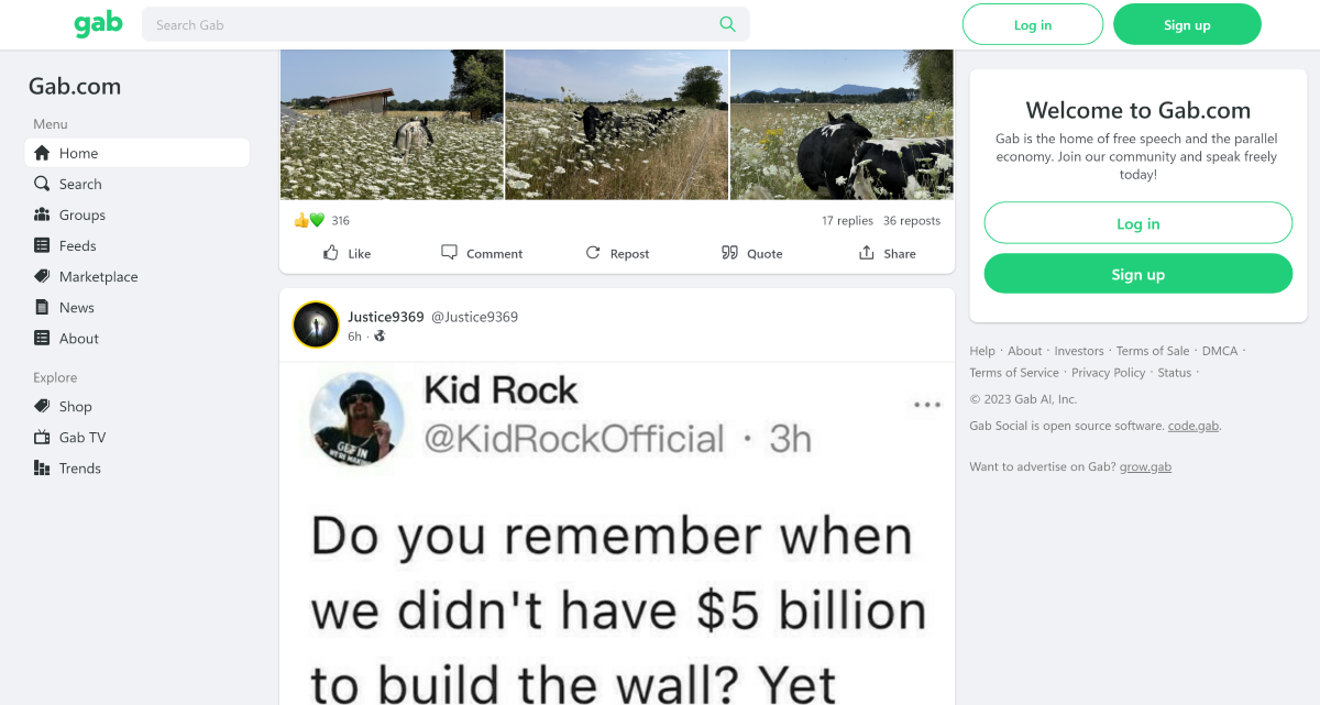 Свободная во всех смыслах площадка, которая подойдёт сторонникам праворадикальной идеологии. Здесь можно писать посты (гэбы) длиной до 300 символов, а интерфейс похож на Facebook и Twitter. Единственное — приложение нельзя скачать в App Store и Play Store.