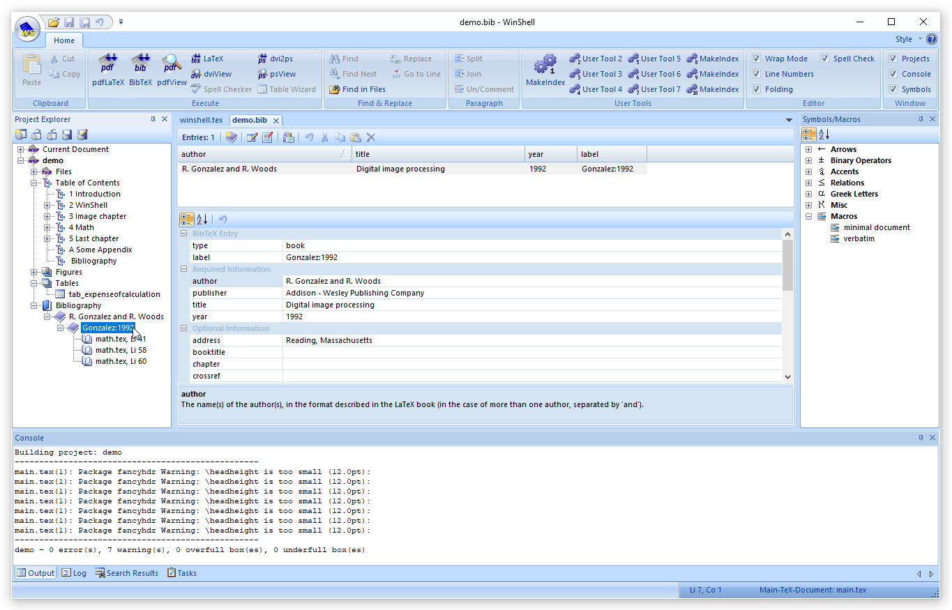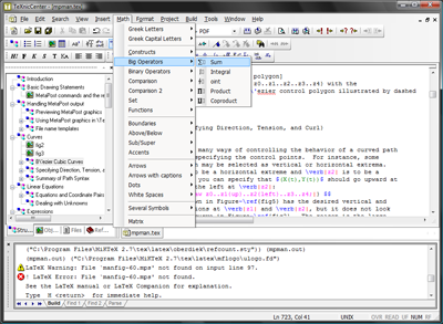 Неплохой LaTeX-редактор со встроенной поддержкой сред TeX и LaTeX. Есть инструменты для работы с математическими выражениями, подсветка синтаксиса, автонабор, проверка грамматики, мастер создания таблиц, поддержка Unicode и прочие штуки. Есть удобный редактор списка литературы и инструмент для управления проектами.