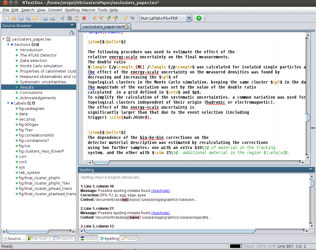 Есть поддержка всевозможных компиляторов LaTeX, инструментов для работы с библиографией и глоссарием, Latexmk и прочее.