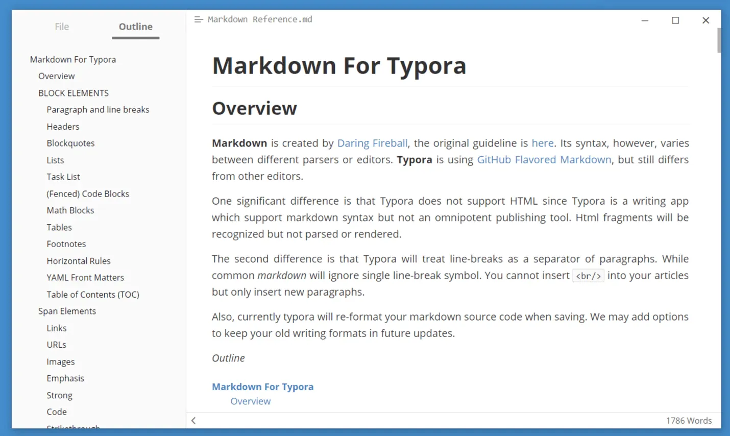 По умолчанию ваша работа будет сохранена в MD-файле, но Typora поддерживает для экспорта/импорта и другие форматы.