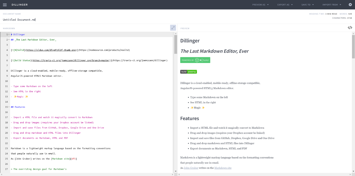 Ещё один хороший редактор Markdown с минималистичным интерфейсом и возможностью просмотра того, как в итоге будет выглядеть ваш текст.