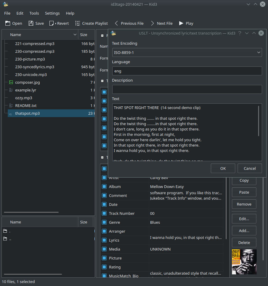 ID3 Tag Editor — это приложение с поддержкой Unicode, которое вы можете использовать для добавления недостающих метаданных на разных языках. Оно также позволяет добавлять обложку к mp3-файлу, которая остаётся встроенной в сам файл.