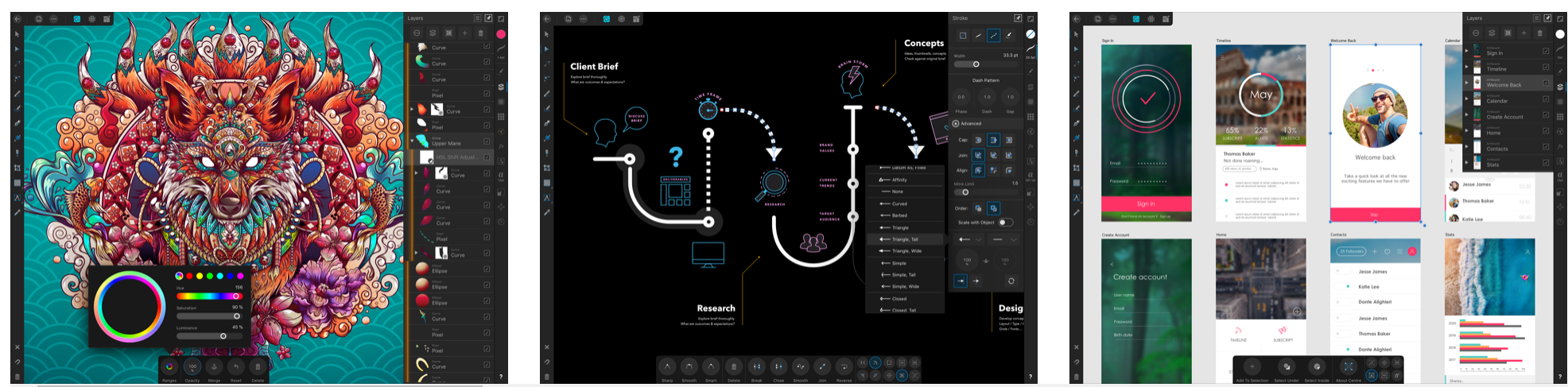 Affinity Designer — полнофункциональное приложение для векторного дизайна на iPad. Почти все функции десктопной версии программы доступны и тут.