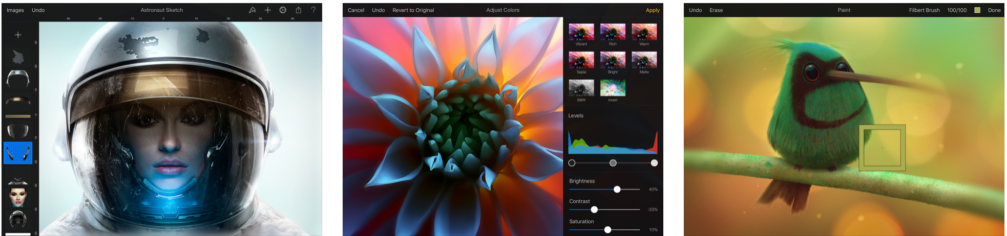 Procreate подходит как для простого рисования, так и для живописи. Он не предназначен для графического дизайна и векторной работы.