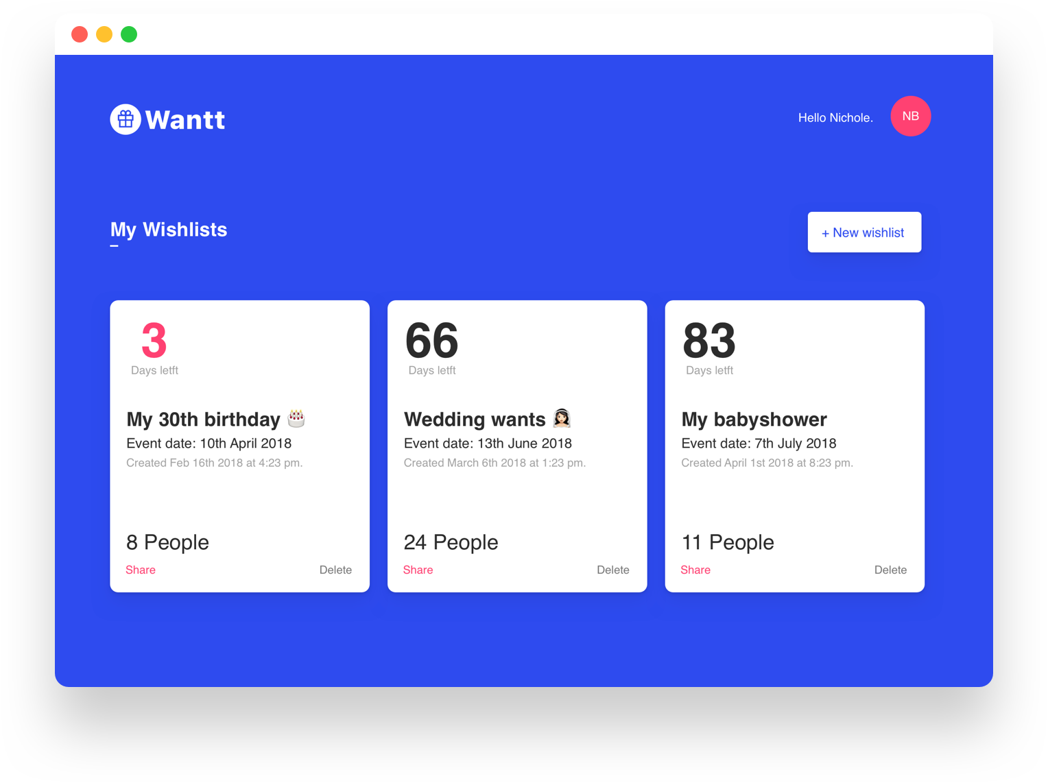 Простой сервис для создания вишлистов по поводу и без. По умолчанию можно выбрать «Рождение ребёнка», «Свадьба», «Новый год». Но ни что не мешает создать список на любую тему.