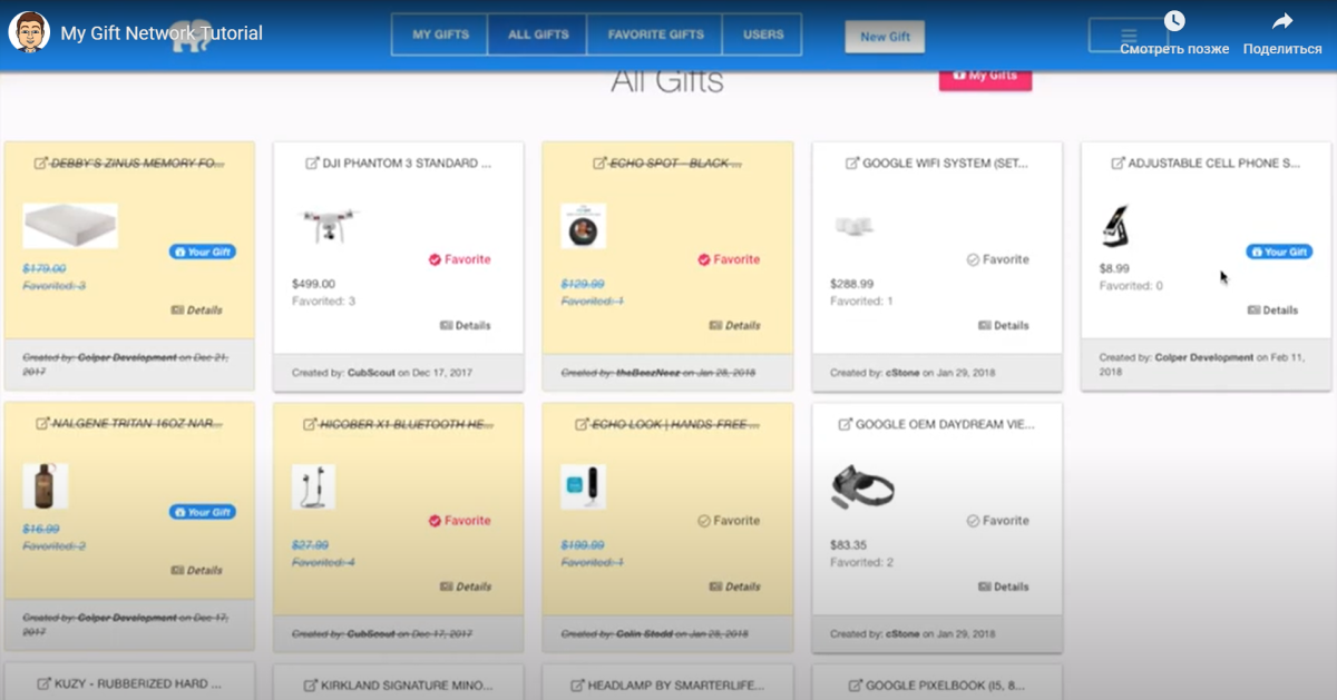 Здесь можно быстро создать и поделиться списком желаний. Товары можно отмечать как «Купленные». Ваши друзья могут в тайне от вас добавлять или помечать товары, выбранные в качестве подарка.