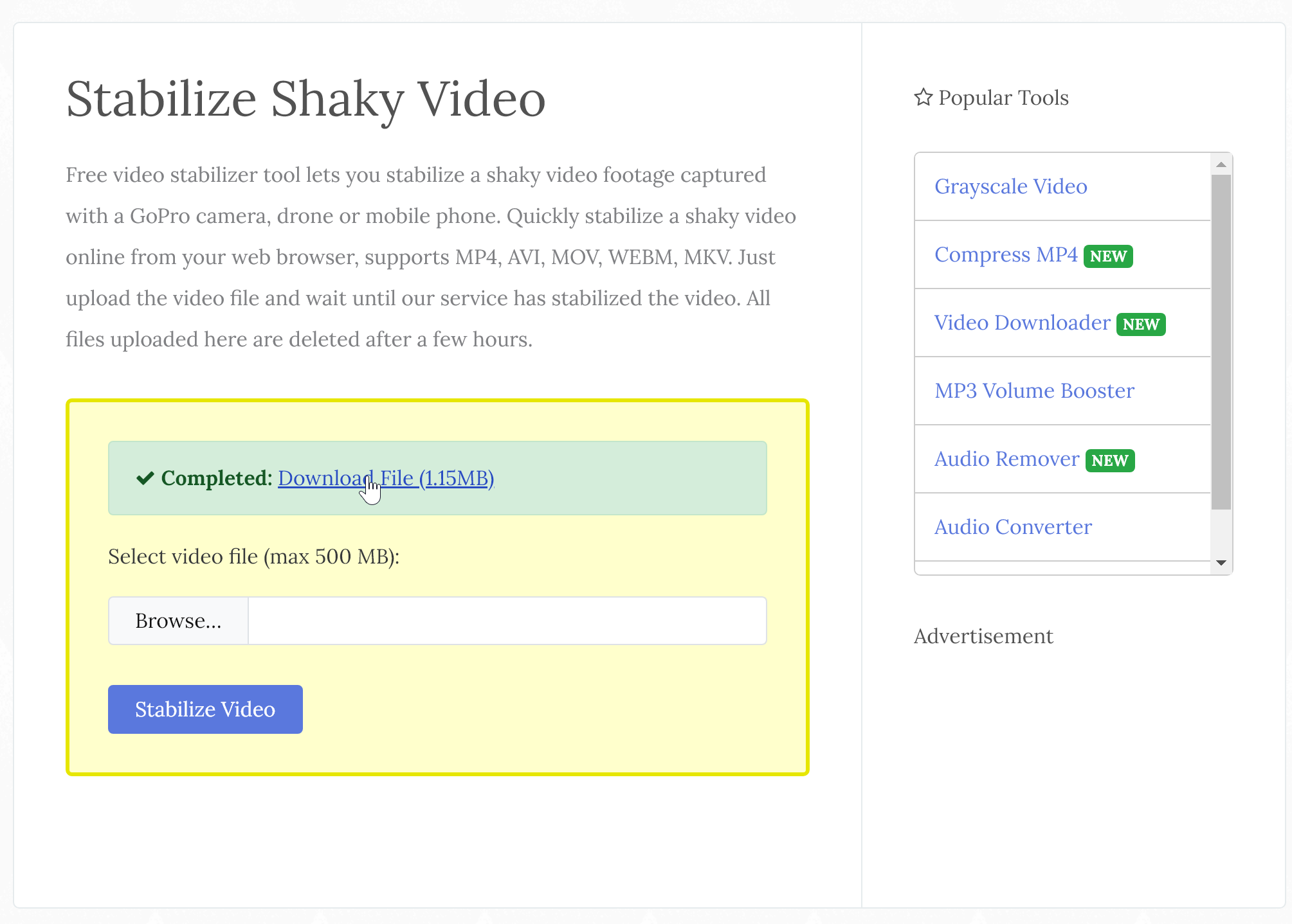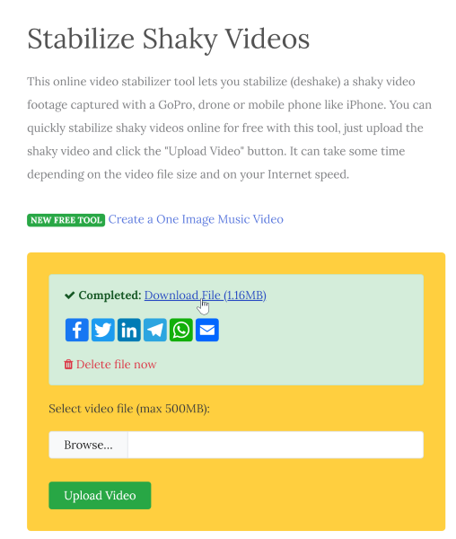 Ещё один сервис, где вы загружаете своё видео и тут же получаете на загрузку стабилизированный результат. VideoUtils поддерживает форматы: MP4, AVI, MOV, WebM и MKV.
