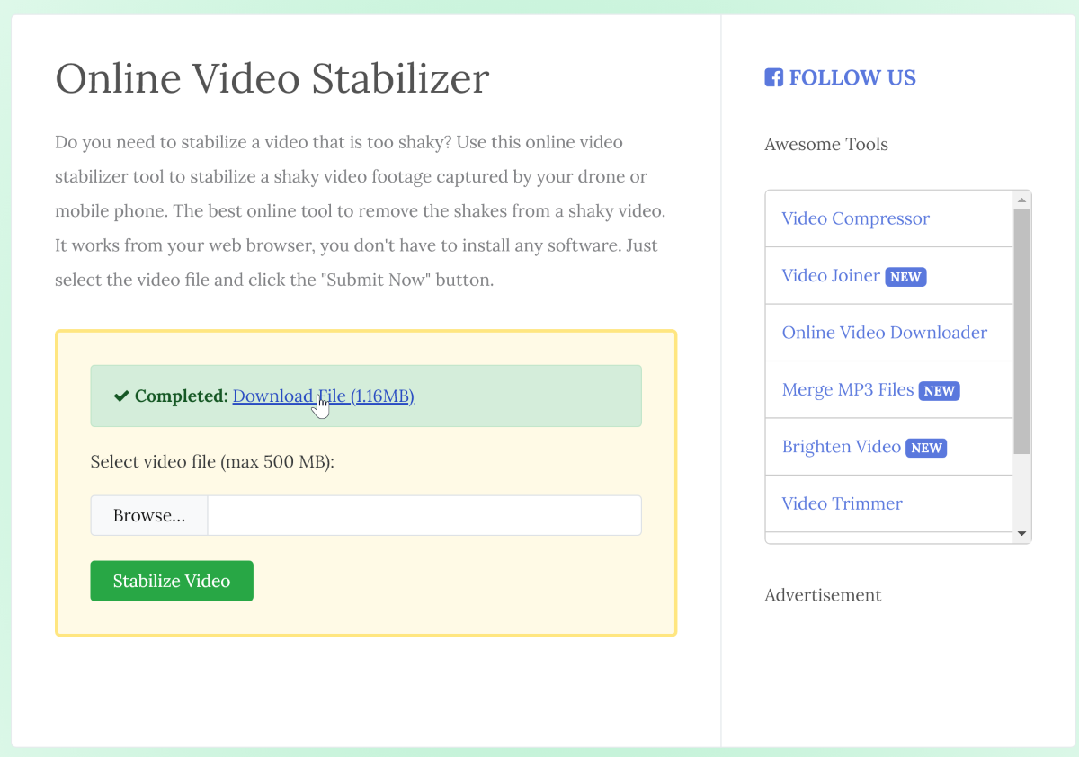 Простой сервис, который поможет стабилизировать видео без всяких ухищрений. Просто загрузите файл, и Mp4Compress тут же предложит скачать исправленную версию.