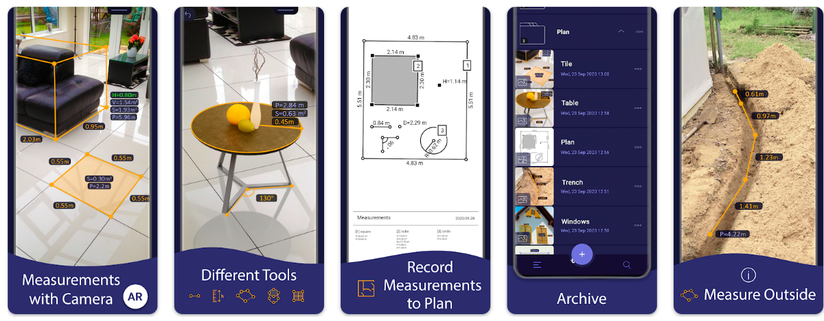 Как понятно из названия, с помощью этого приложения можно измерять различные предметы. Благодаря поддержке ARCore вы сможете производить измерения в футах, ярдах, сантиметрах, метрах, миллиметрах и дюймах. Для этого нужно просто навести камеру на поверхность и тапнуть по экрану.