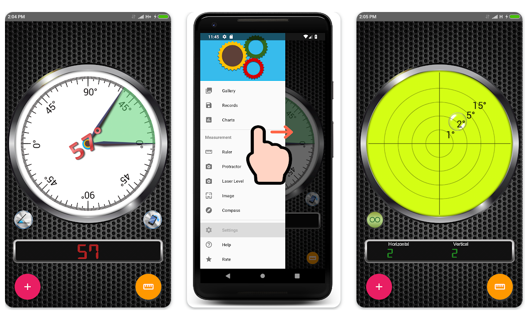 Несмотря на устаревший дизайн, в этом приложении можно измерять углы и наклоны. Для этого здесь есть линейка, транспортир, уровень и многое другое.