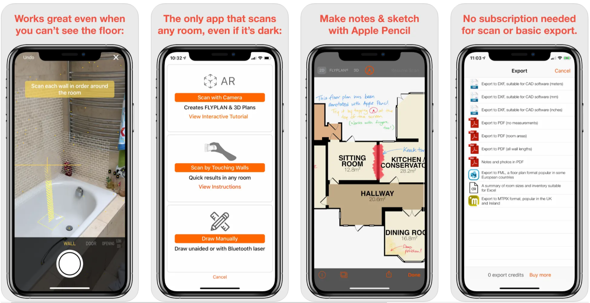 Если вам нужно сделать план комнаты, то Roomscan Pro — ваш вариант. Для работы нужно направить смартфон на пол, а затем на каждую из стен. Вот план и готов. Приложение также поддерживает лидар в новых айфонах.