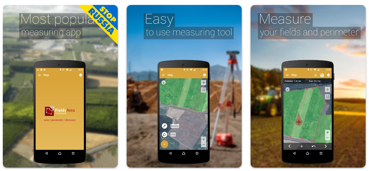 С помощью этого приложения можно измерять площадь, расстояние или периметр определённого региона. Во многом логика похожа на Google Карты. В приложении вы видите карту нужного местоположения, указываете точки и получаете результат.