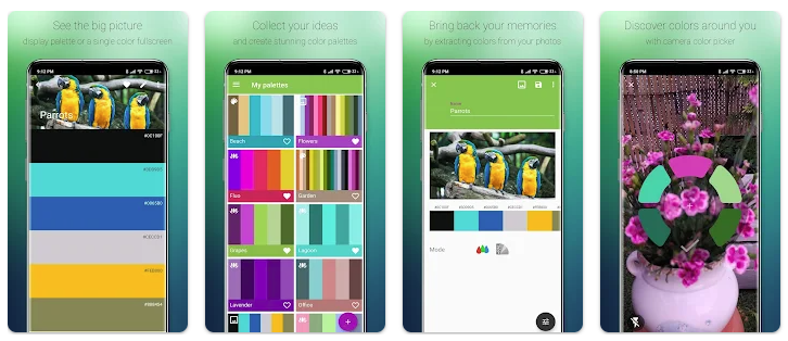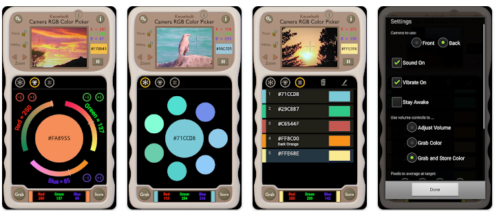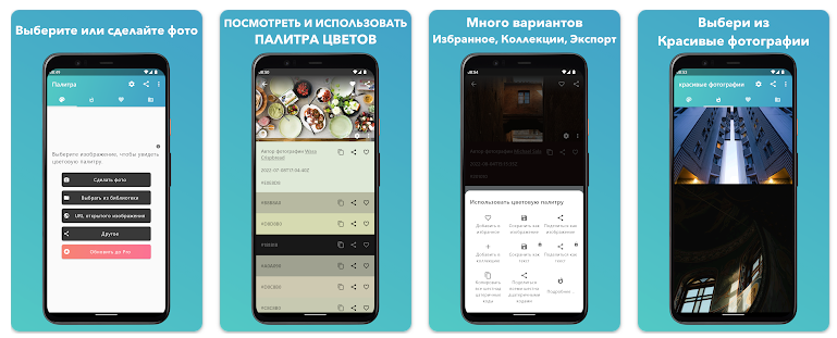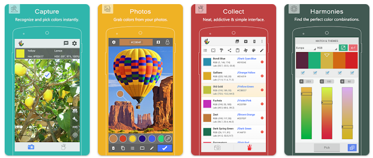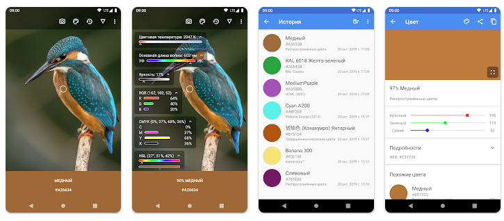 Пожалуй, самое мощное приложение в этой подборке. Кроме функции извлечения цвета из фото/картинок, здесь есть возможности для распознавания и измерения цветов в режиме реального времени с помощью камеры, смешивания цветов, настройки баланса белого и многого другого.