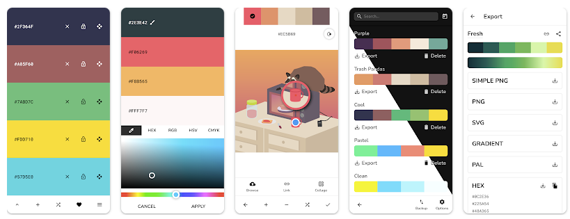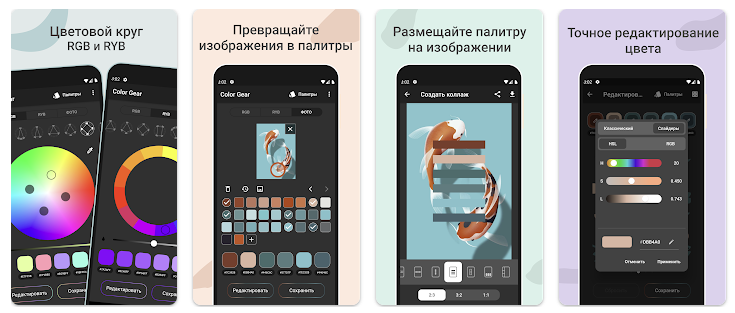 Также можно редактировать цвета, посмотреть, как различные цвета сочетаются друг с другом, сохранять палитры и делиться ими с другими людьми.