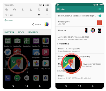 А эта приложуха немного отличается принципом работы от всех остальных в этой подборке. При её запуске у вас на экране появится «плавающий» круг, который способен извлечь цвет из всего, что вы видите: значки и задний фон на главном экране, страницы в браузере, интерфейс любого открытого приложения и т.д.