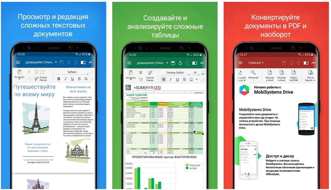 OfficeSuite — один из интереснейших конкурентов Microsoft Office и Google Drive для мобильных устройств. Он существует уже давно и обзавёлся множеством функций. С точки зрения удобства использования, это приложение удивительно хорошее, хотя в бесплатной версии имеется лишь самый необходимый минимум функций.