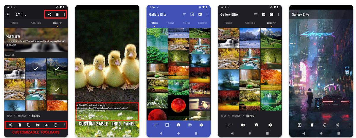 Вполне себе годное приложение-галерея с шикарными возможностями кастомизации и приятным интерфейсом. Но главная фишка в том, что почти вся работа в приложении ведётся с помощью свайпов, так что вы вполне сможете пользоваться им одной рукой.