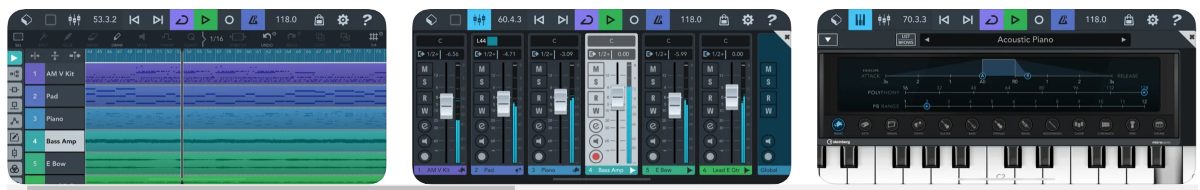Это мобильная версия популярного приложения для работы с DAW от Steinberg. Конечно, мобильная версия не такая мощная. Есть поддержка безлимитного количества аудио и MIDI, изменение пиковых тонов, более десятка эффектов и многое другое.