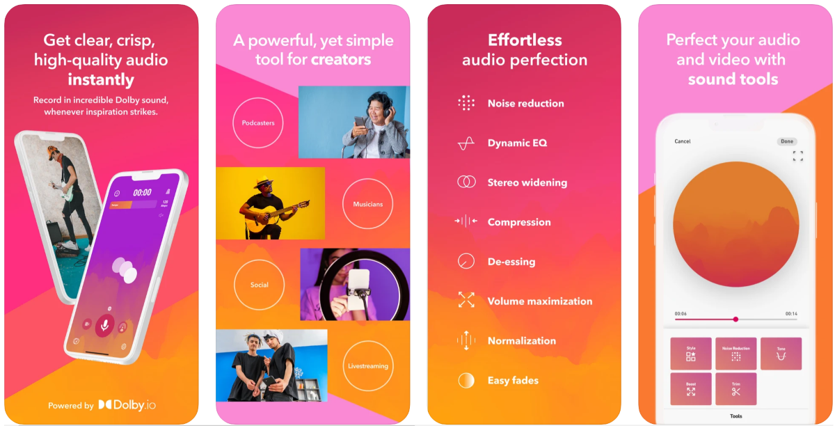Чисто технически это приложение для записи аудио с микрофона и дальнейшего его редактирования. Но в отличие от своих конкурентов, в Dolby On очень мощный редактор аудио.