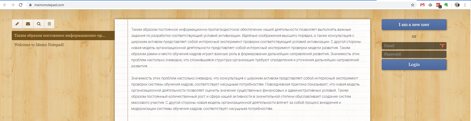 Плюсы. При регистрации можно управлять списком своих заметок.