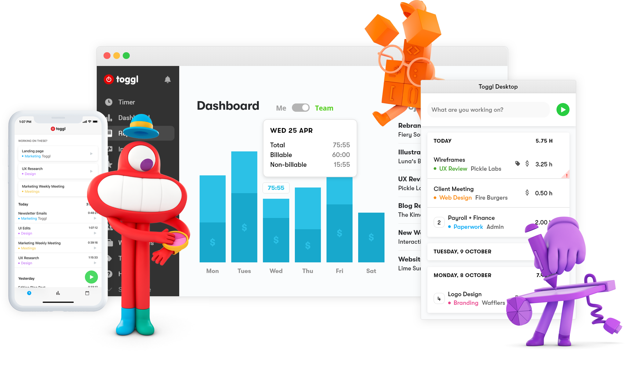 Toggl (Android, iOS, Linux, macOS, Windows, веб-приложения, расширения браузера)