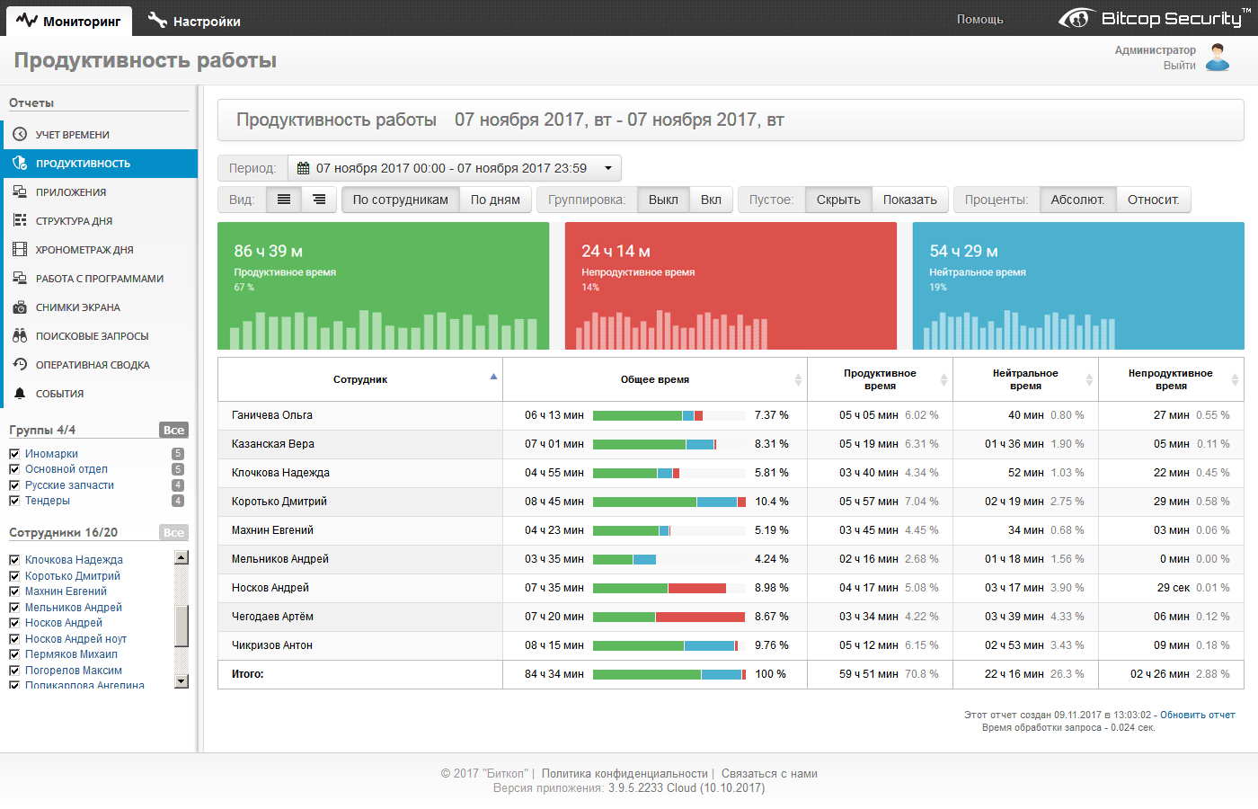Анализ продуктивности - наглядно показывает на сколько эффективно сотрудник использует свое рабочее время.