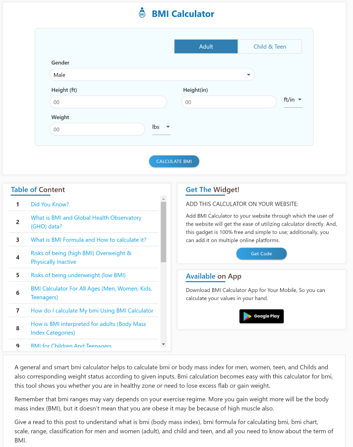 При переходе в калькулятор открывается естественно сам калькулятор. Дополнительно ниже отображается подробная информация о назначении калькулятора и развёрнутые ответы на популярные вопросы.