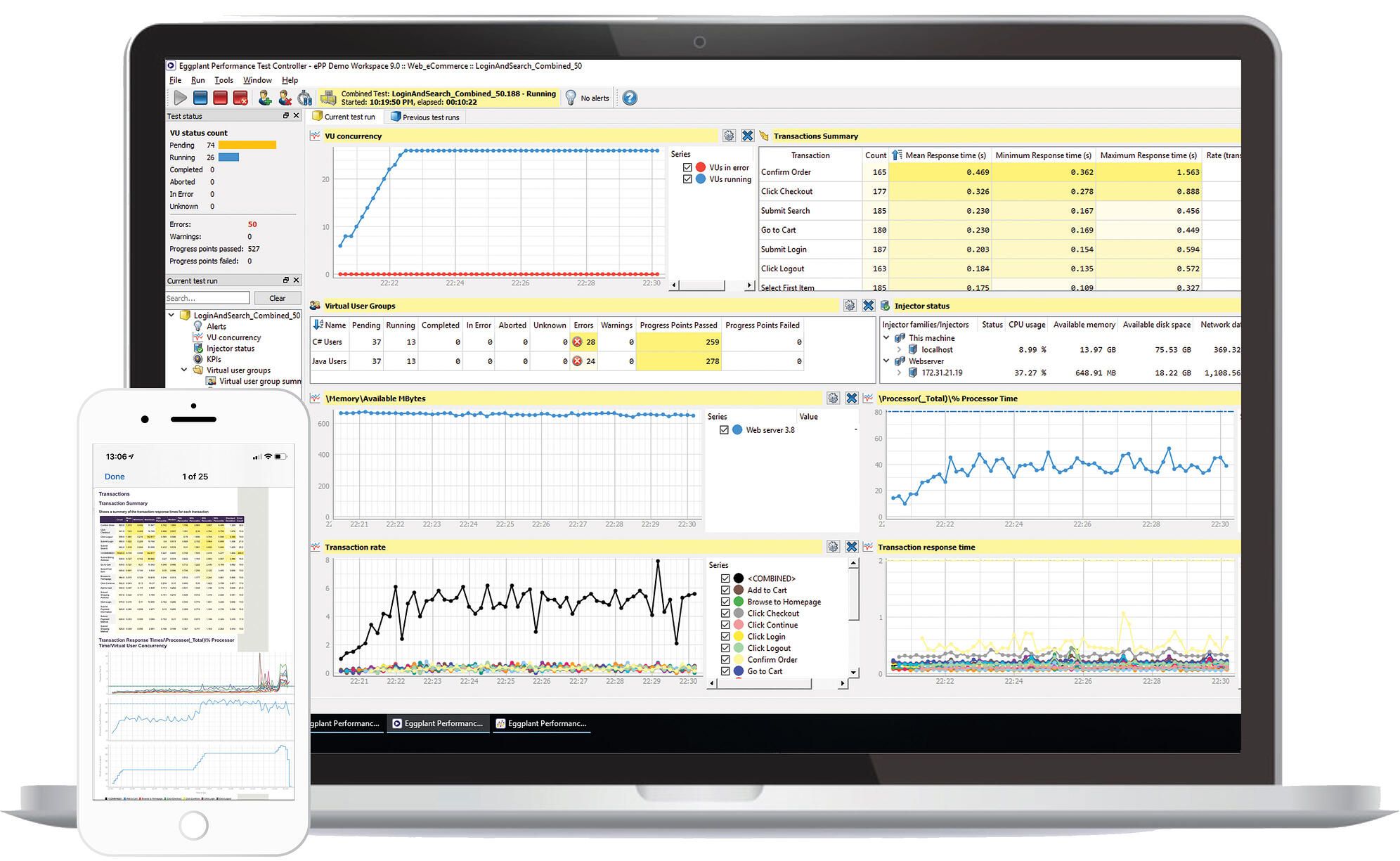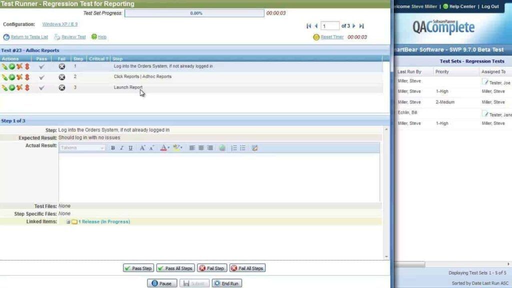 - Обеспечивает видимость хода выполнения теста в режиме реального времени.
