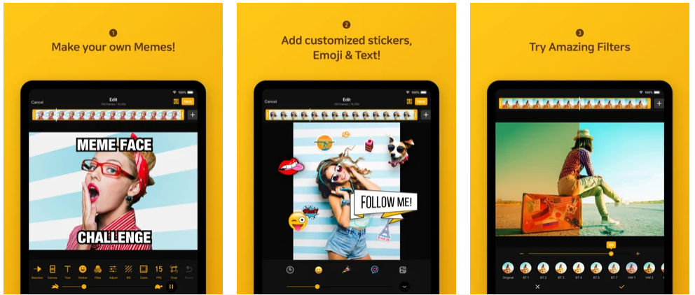 Вы сможете применить фильтры, настроить частоту кадров, а также создать эффект Бумеранга. Приложение позволяет не только делать классные гифы, но и тут же редактировать их.