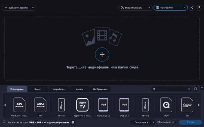 Movavi Video Converter — удобный и понятный конвертер, который входит в Movavi Suite, но в то же время выпускается отдельно. Программа может преобразовывать различные расширения для отправки итогового файла на любые устройства.