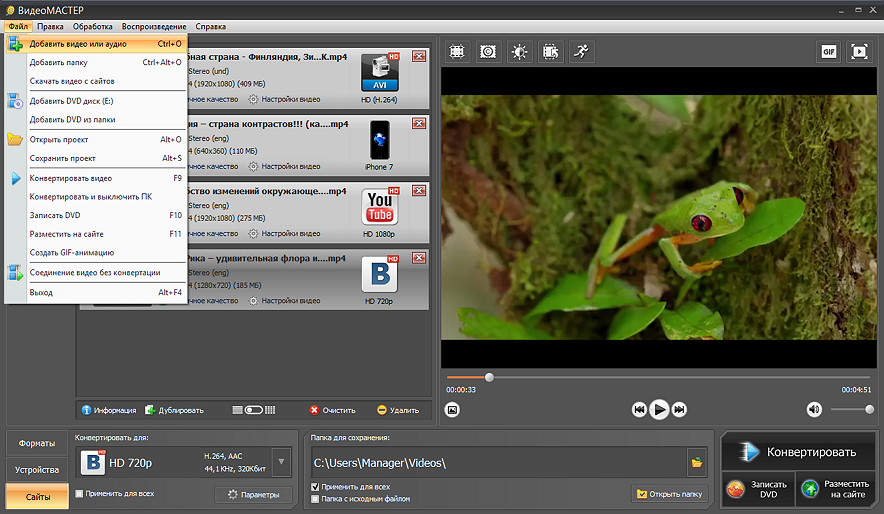 Разработчики внедрили в программу возможность интеграции с социальными сетями и YouTube, добавили пресеты для удобной кодировки под мобильные устройства и приставки.