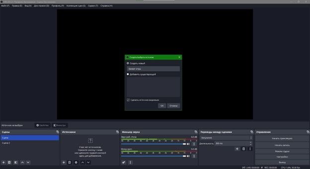- Есть отдельный модуль для тонкой настройки звука — громкости, выбора источника (например, микрофона), формата аудиодорожки.