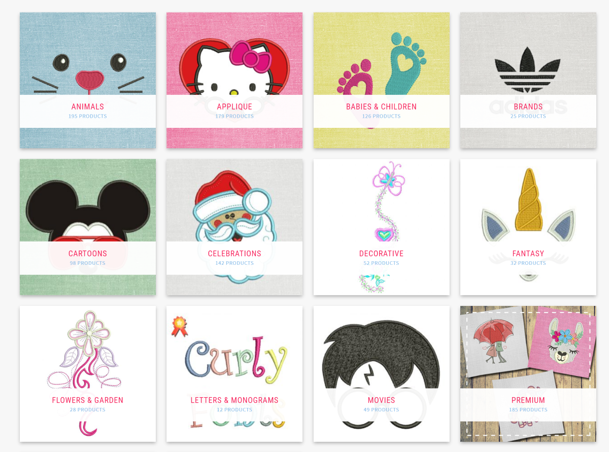 Сайт отлично подойдёт, если вы ищете дизайны в стиле «Hello, Kitty» (или другой детской тематики) и готовы потратить несколько долларов на это. Список дизайнов кажется бесконечным, а у каждого из них в наборе ещё с десяток вариантов.