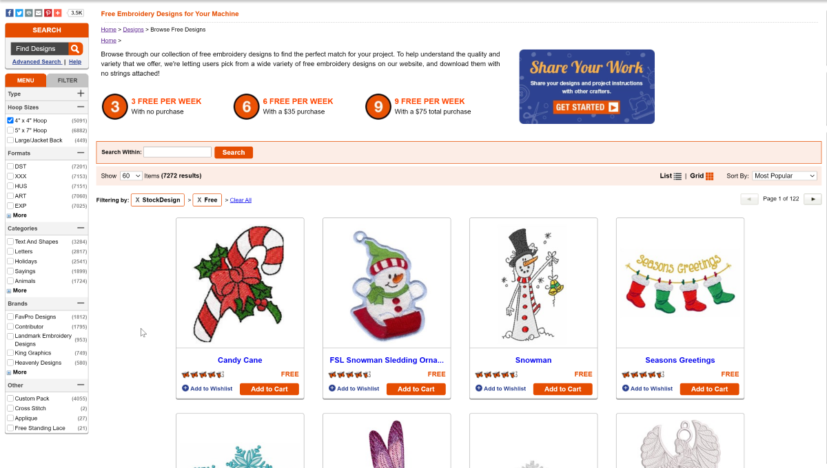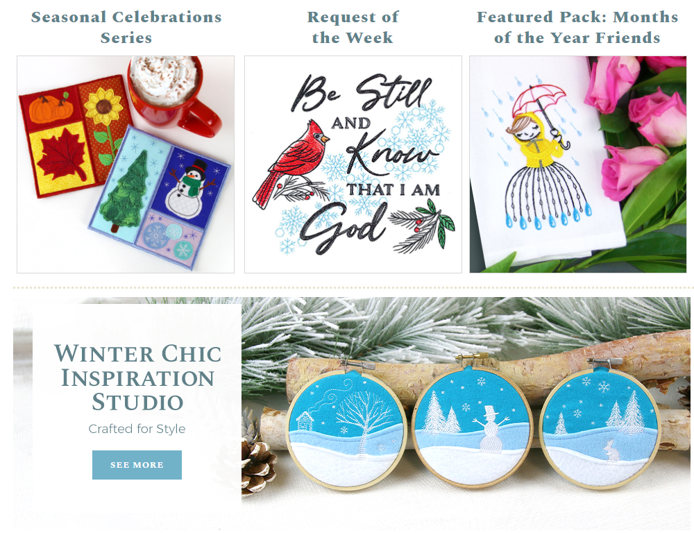 Как я понял, это сайт производителя ниток и прочего стаффа для машинок. Естественно, у них есть свой каталог из дизайнов для швейной машинки. Доступна фильтрация по тематике, материалу, трудозатратам и прочему.