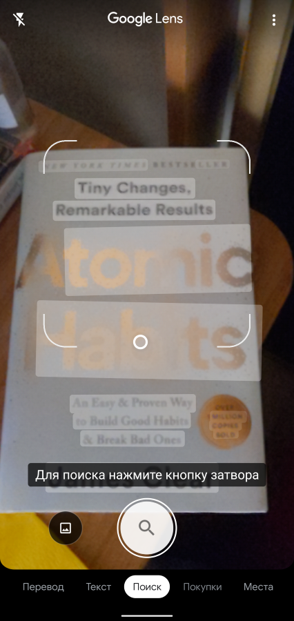 ● Ваша камера: На телефонах Pixel и некоторых других устройствах вы можете найти Lens в обычном приложении камеры. Просто откройте камеру, а затем нажмите и удерживайте палец в любом месте видоискателя, чтобы запустить Lens-поиск в поле зрения объектива камеры. Результаты появятся прямо здесь, без необходимости переключения между приложениями и дополнительного поиска.