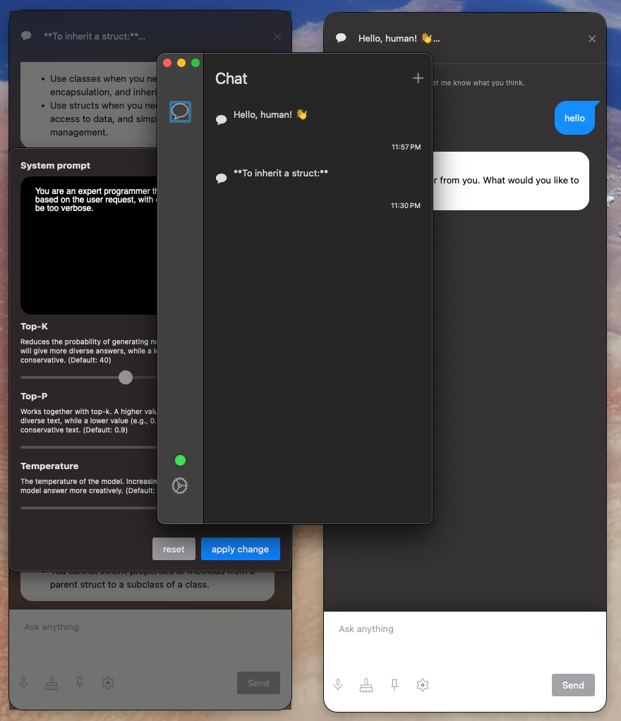 Кроссплатформенное приложение для локального запуска моделей ИИ или LLM. Из основных фишек можно выделить использование нескольких диалоговых веток и возможность добавления стеков знаний с помощью хранилищ Obsidian и других сервисов.