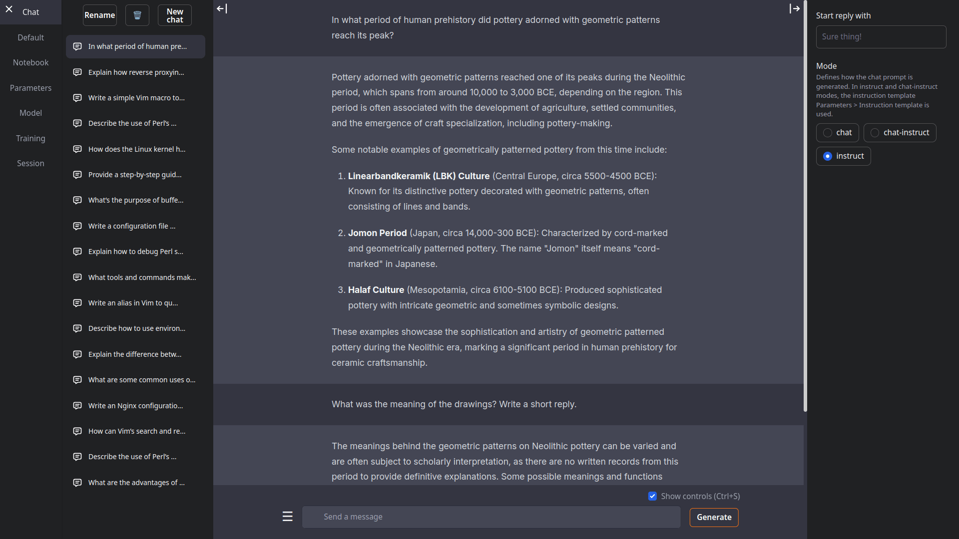 Веб-интерфейс для запуска моделей, ориентированных на генерацию текста. Вы можете выбрать один из трёх стилей интерфейса: традиционное окно чата, двухколоночный вид или блокнот. Есть поддержка всех моделей, совместимых с OpenAI, и возможность работать с библиотекой Transformers.