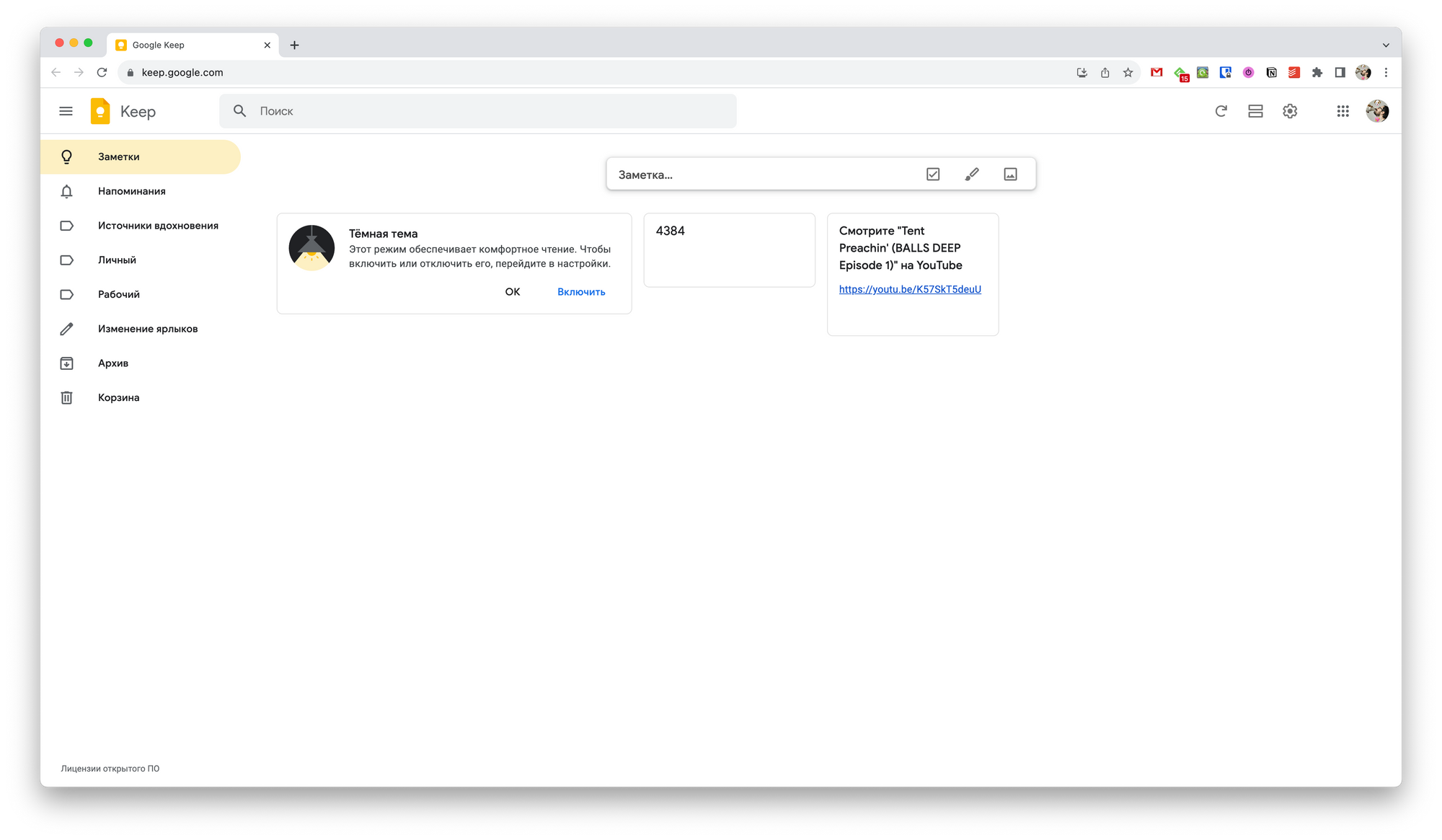 Подойдёт для создания коротеньких и простых заметок, вроде списков покупок. Также вы можете начать писать в нём какую-то статью или эссе, а затем преобразовать эту заметку в документ и продолжить работать над ним уже в Google Docs. Ещё здесь есть возможность открыть доступ к заметкам другим пользователям (пригодится, если вы работаете над каким-то совместным проектом).