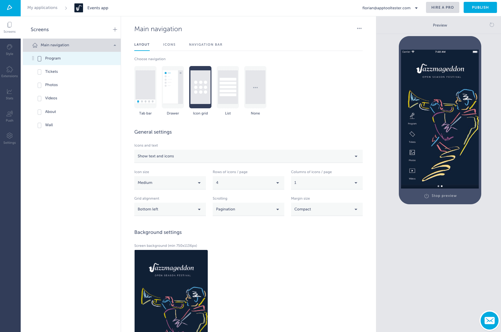 Не самый дорогой конструктор, но и дешёвым его не назовёшь: цены стартуют от 49$ (тариф Basic) в месяц. Но хитрость в том, что базовый тариф не позволит опубликовать своё «детище» в Apple — для этого нужно подключить тариф Advanced за 79$.