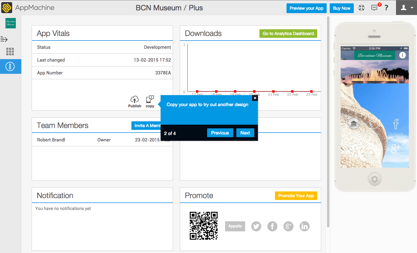 Одна из самых крупных «рыбок» в этой сфере (кстати, сервис существует с 2010 года). В инструменте есть большой выбор строительных блоков: карты лояльности, интеграция с расписанием встреч, отзывы пользователей и пр. В местной галерее можно посмотреть примеры созданных приложений (вдохновиться, так сказать).