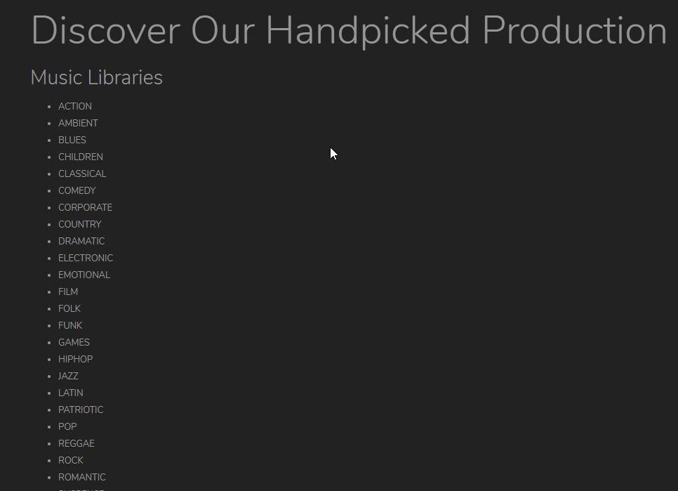 Песни сгруппированы по жанру, настроению, инструменту и продолжительности. Возможно, вам придётся немного покопаться в представленной здесь коллекции, чтобы найти то, что вам нужно.