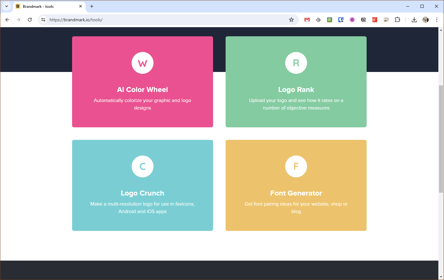 Позволяет создавать логотипы и другие фирменные штуки, типа визиток, иконок приложений и многого другого. Для начала вам нужно просто указать название своего бренда, несколько ключевых слов и выбрать цветовую схему. На основе этого сервис сгенерирует несколько дизайнов для вашего логотипа.