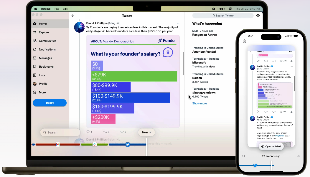 Приложение для Mac, которое будет записывать и хранить всё, что вы делаете в компьютере. Так вы в любой момент сможете легко найти любую информацию, файл, видео, сайт и прочие штуки, с которыми взаимодействовали ранее.