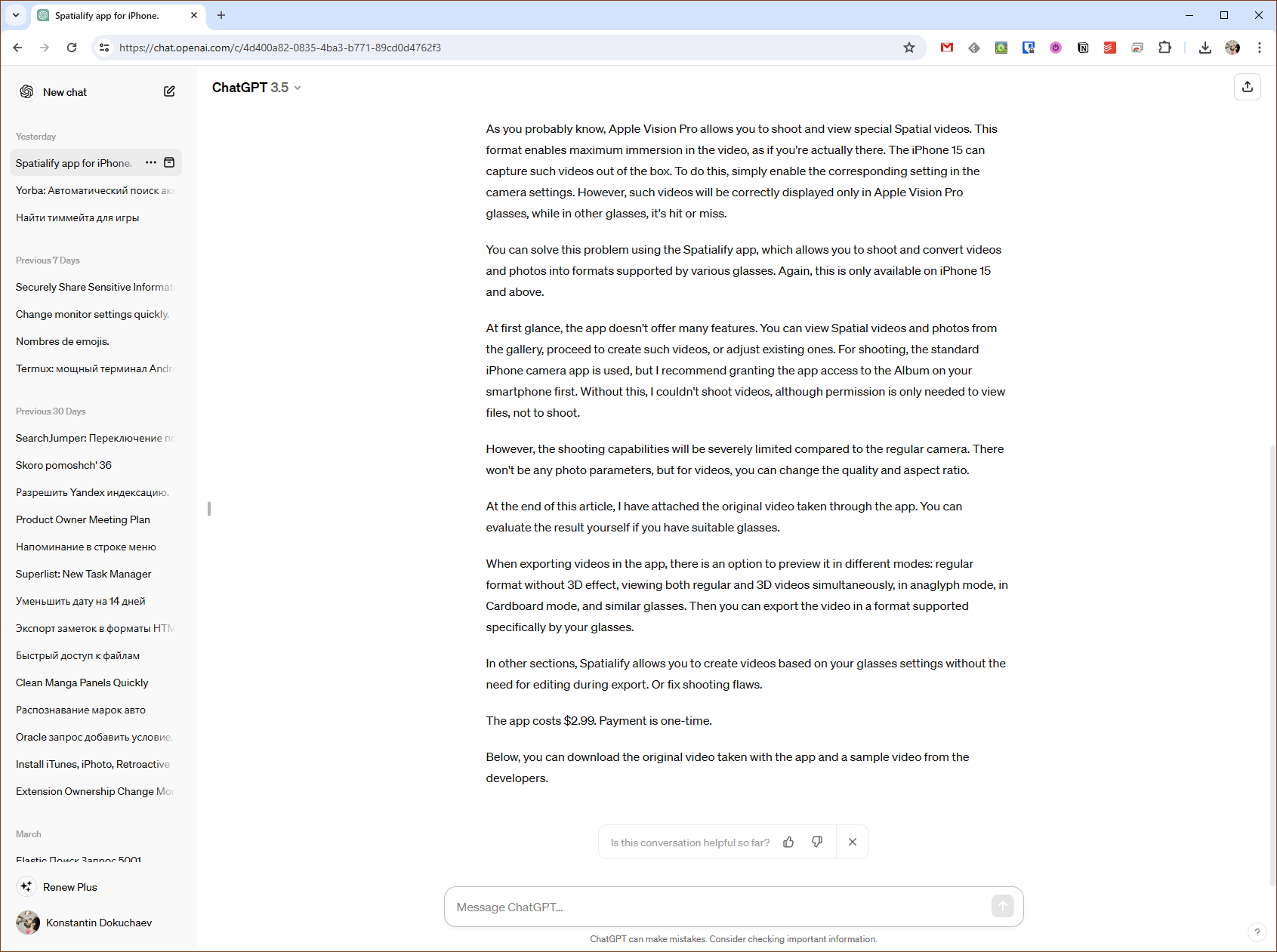 К сожалению, бот доступен только для устройств под Android и поддерживает только версию ChatGPT 3.
