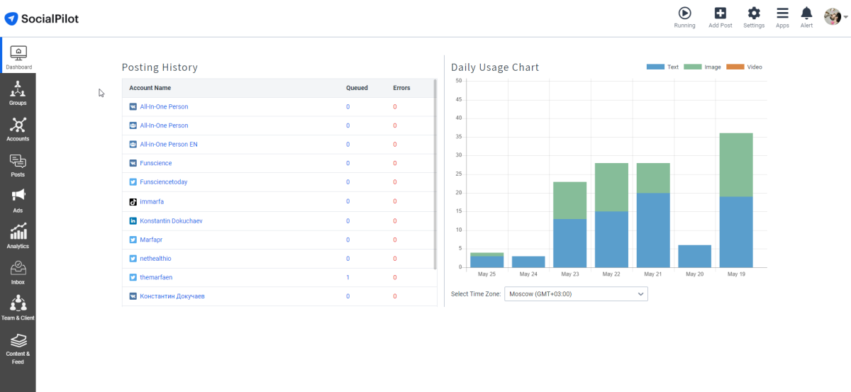 SocialPilot — это универсальный инструмент, который вы можете начать использовать прямо сейчас. Он поможет тем, кто хочет написать все твиты одновременно, но не хочет публиковать их сразу. Как это работает? Вы просто указываете время и дату публикации твитов, создаёте твиты и добавляете их в очередь приложения. Когда подойдёт указанное вами время, твиты автоматически будут отправлены. Кроме того, с помощью SocialPilot вы можете управлять несколькими профилями Twitter.