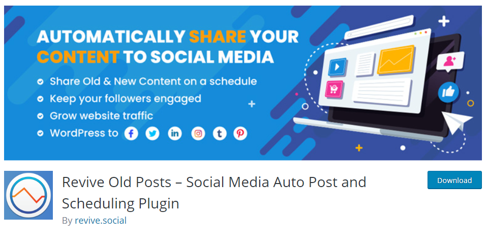 Это один из популярных плагинов Twitter для WordPress. Он решает проблему работы со старым, но актуальным контентом в вашем блоге. Как только вы настроите плагин, он автоматически начнёт делиться в Twitter публикациями с вашего интернет-ресурса. Этот плагин изначально был создан только для Twitter, но по многочисленным просьбам пользователей был переделан, и теперь поддерживает и другие популярные социальные сети, такие как LinkedIn, Facebook, Tumblr.
