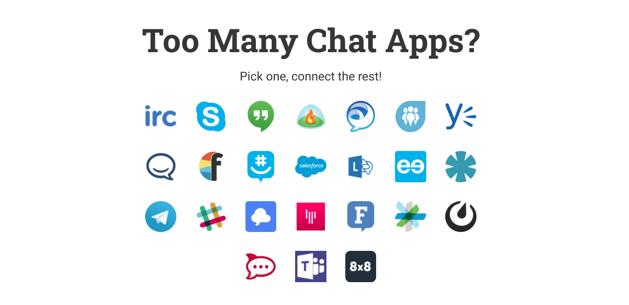 Sameroom помогает соединить разные чаты, даже если они работают на совершенно разных сервисах. Соединения/триггеры между соцсетями/чатами они называют «трубами» — наподобие вакуумных труб, которые в прошлом передавали сообщения между разными отделами корпорации. Таким образом платформа автоматизирует сбор всех сообщений из разных мест в одно — вам удобное. С очень жёсткими ограничениями можно пользоваться бесплатно. Нормально пользоваться можно будет, если платить 100 долларов в месяц — 40 труб с безлимитным сбором сообщений. Для больших корпораций выходит дороже. Только браузерное решение.