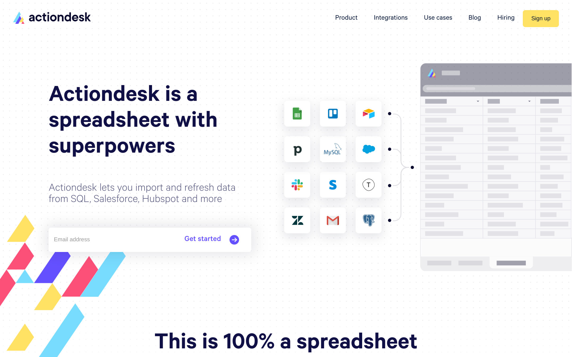Actiondesk — это, по сути, простые таблицы, как Google Sheets или Excel. Но у сервиса одна суперспособность: импорт данных из любого источника. Не надо всё перетаскивать, копировать, вставлять и т.д. Плюсы: понятный вид, так как уже знакомая философия таблиц; автоматическое обновление данных по первоисточнику. Минус в том, что количество интеграций пока что мал и не стоит того времени, которое потратите, пока разберётесь в механике подключения нового действия.