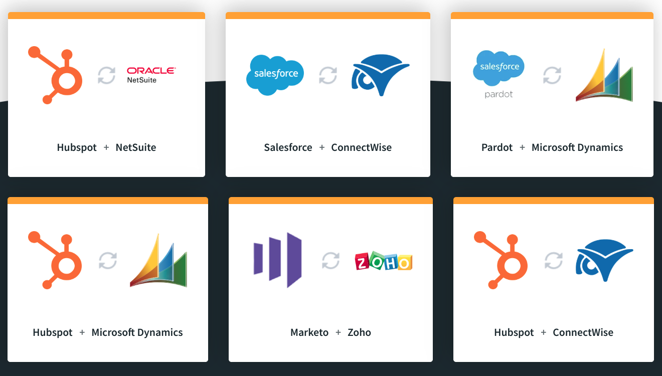 Bedrock Data обеспечивает интеграцию облачных данных в бизнес-процессы посредством двунаправленной синхронизации. Включает HubSpot, Marketo, Salesforce, Microsoft Dynamics, NetSuite, ConnectWise и так далее. Фича в том, что не дублирует одну и ту же информацию. Например, если один и тот же клиент написал в разных местах, то сервис это поймёт и объединит в один контакт (если оно вам надо, конечно). А так, дорого. Очень.